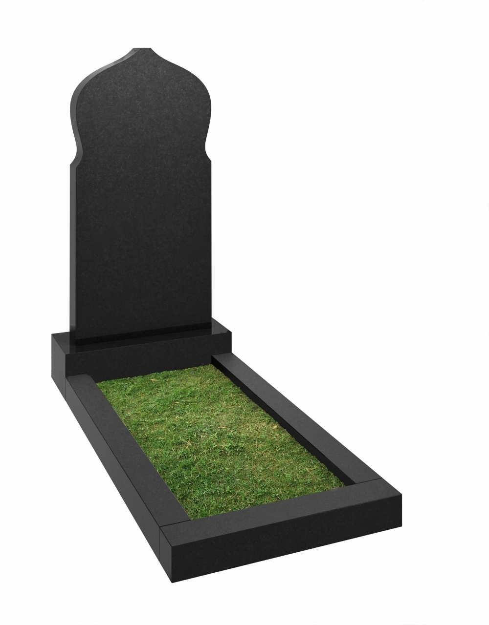 Этот вертикальный гранитный памятник используется для украшения мусульманских гробниц. Он выполнен в сдержанном дизайне и украшен сверху фигурой, напоминающей купол мечети. Традициями запрещается изображать портрет усопшего на памятнике мусульманина. На стеле можно написать имя умершего, даты его жизни, также разрешено изображение полумесяца и слов из Корана. На полированном черном габбро-диабазе хорошо будет смотреться гравировка и барельефы. Вы можете быть уверены, что этот вертикальный гранитный памятник простоит без повреждений до ста лет, а также будет неприхотлив в уходе.