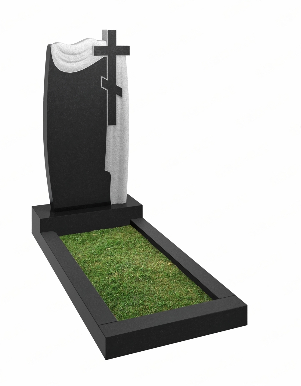 Памятник с плащаницей предлагаем православным верующим. На верхней резной части стелы находится плащаница, плавно ниспадающая красивыми крупными складками вниз по правому краю стелы. На плащанице находится православный крест. Используемый материал- гранит.