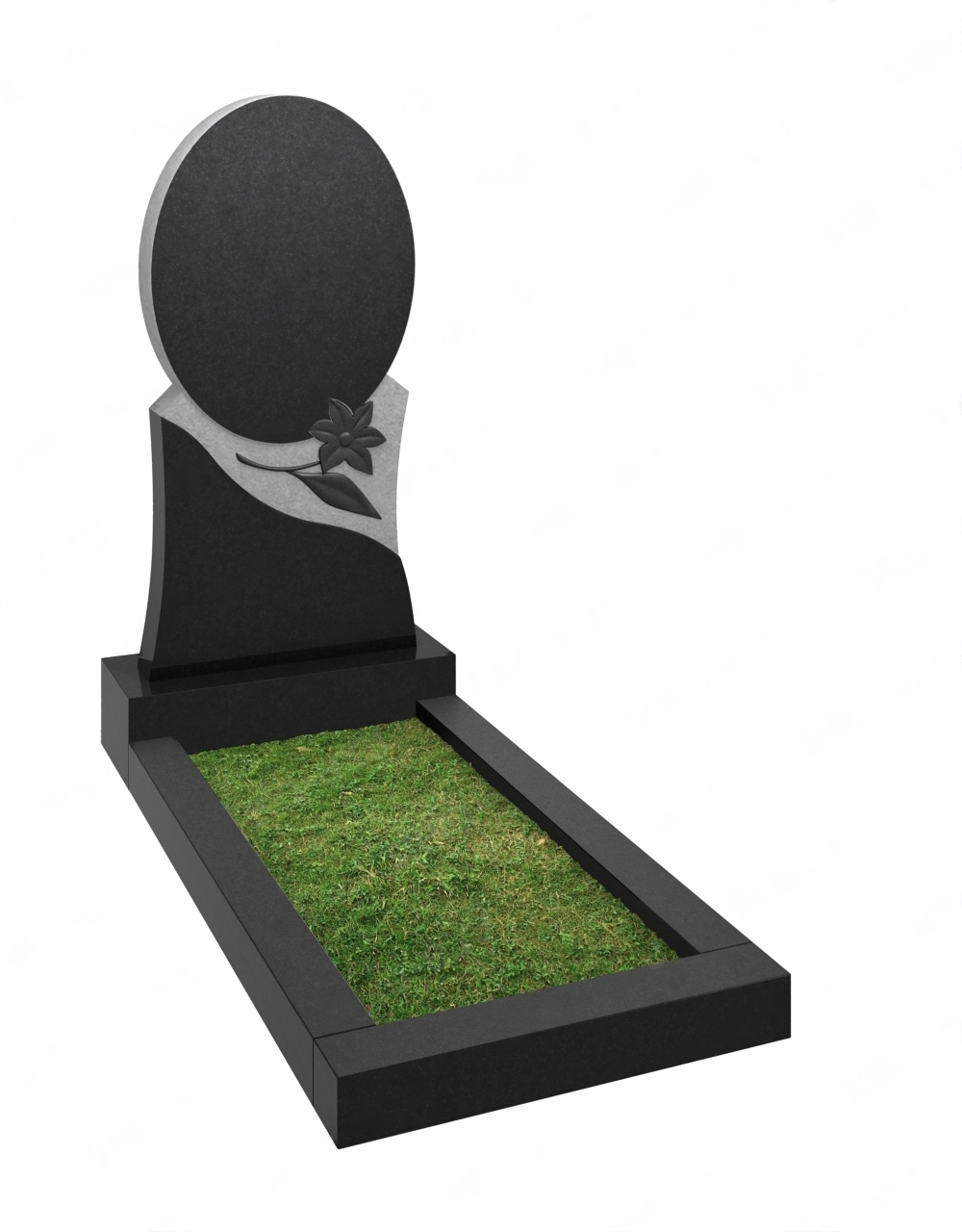 Памятник В-63 представлен в виде круглого зеркала, установленного на тумбе, которая состоит из темной нижней части и волнообразной светлой верхней части. На светлой части находится черный цветок, оттеняя светлую часть. При затруднении выбора материала для изготовления памятника всегда можно обратиться с консультацией к нашим менеджерам.