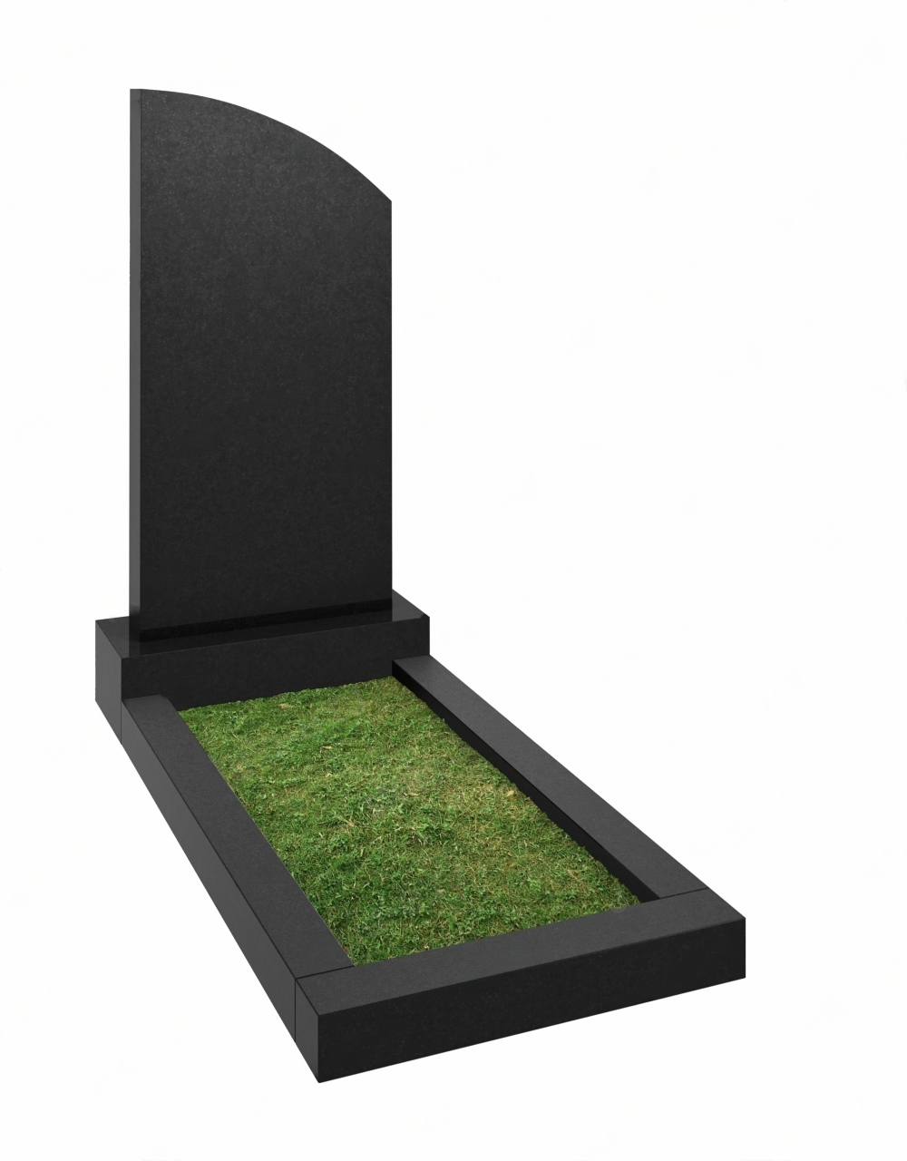 Строгий, лаконичный памятник, с необычным оформлением стелы ,которая образует полусвод. Фундаментальность памятника дает оформление в одной цветовой гамме. Используемый материал -гранит.